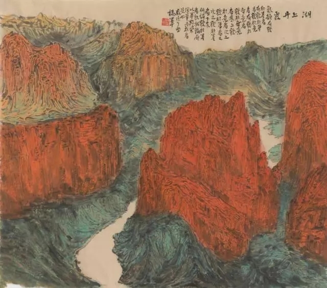 湖上丹霞 86.5x77cm 纸本设色 2017.webp